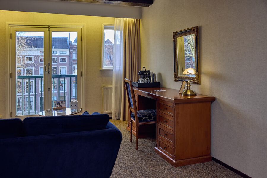 Genießen Sie den typischen Amsterdamer Ausblick in unserem Superior Zimmer mit Blick auf die Prinsengracht-Kanal, Teil des zum UNESCO-Welterbe gehörenden Kanalgürtels. Dieses stilvolle Zimmer verfügt über einen französischen Balkon mit Flügeltüren, durch die frische Luft und das sanfte Treiben am Kanal in den Raum strömen.