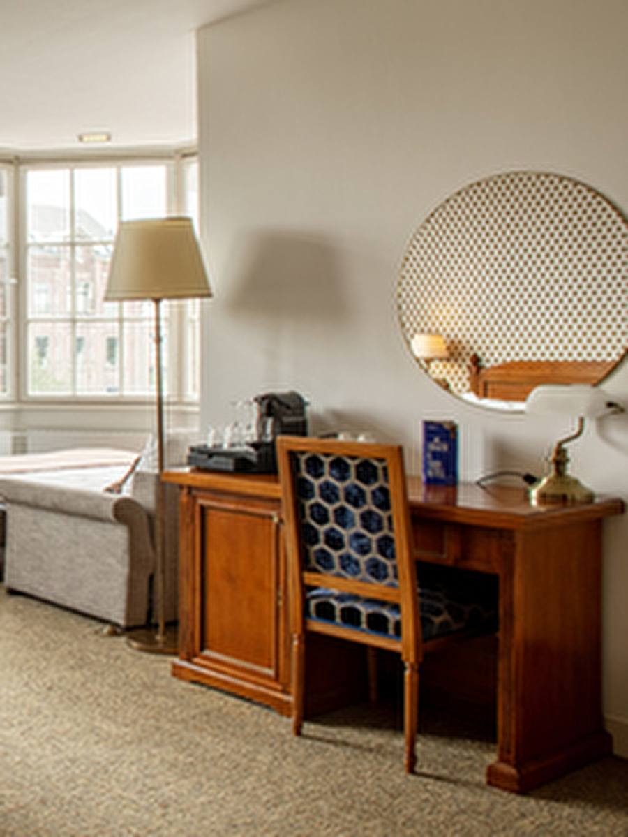 Nos Suites Junior sont situées à l’angle du bâtiment principal et offrent une vue imprenable sur la dynamique Leidsestraat ainsi que sur le magnifique canal Prinsengracht. Ce sont nos chambres d’angle les plus spacieuses, avec de grandes fenêtres qui laissent entrer la lumière naturelle et offrent un panorama exceptionnel.