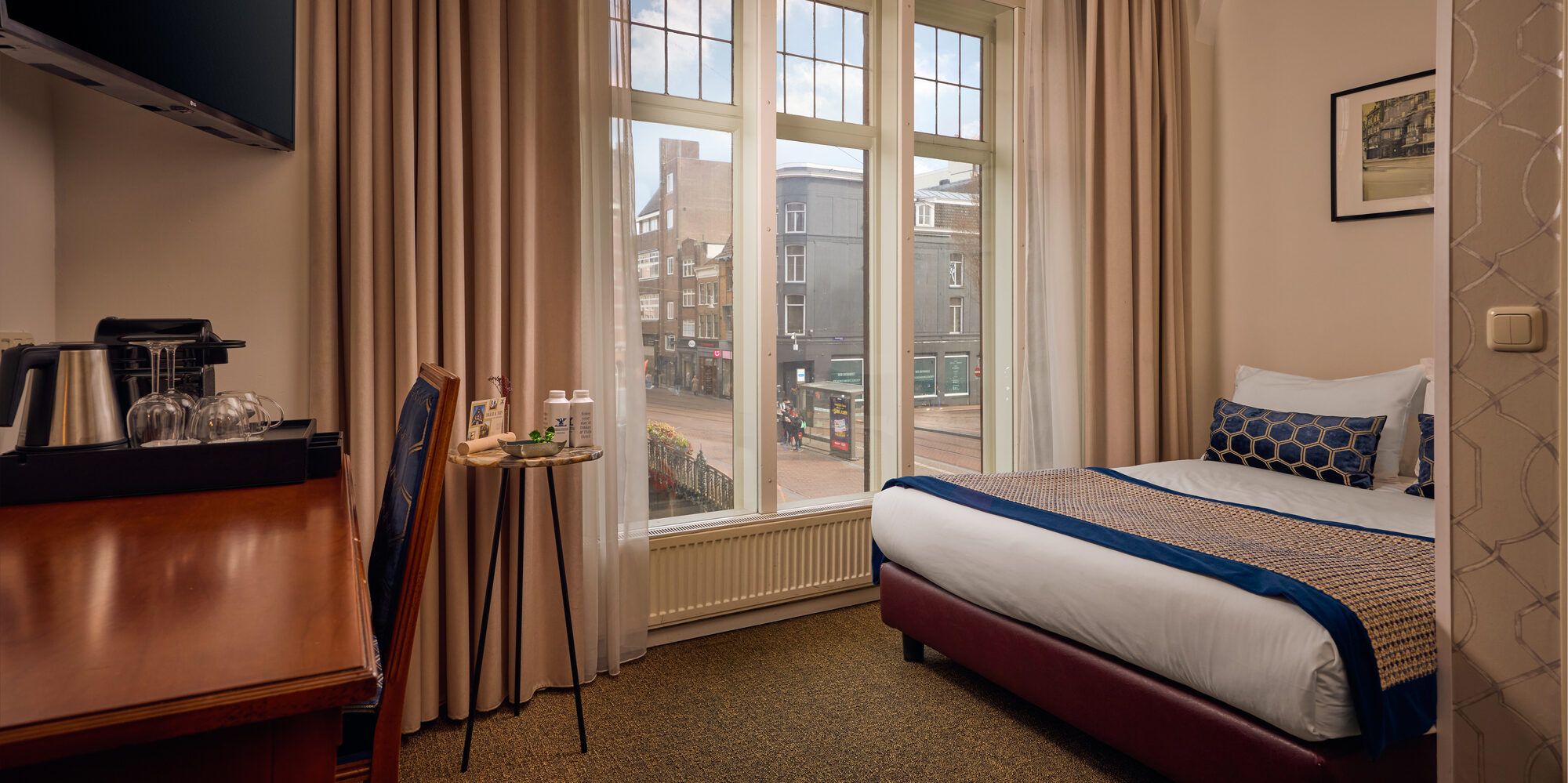 De kamer is slim ingedeeld en voorzien van een comfortabel eenpersoonsbed en een badkamer met douche. Voor uw gemak en comfort beschikt de kamer over een Nespresso koffiemachine, een minibar, gastvrije amenities, zachte badjassen en slippers.