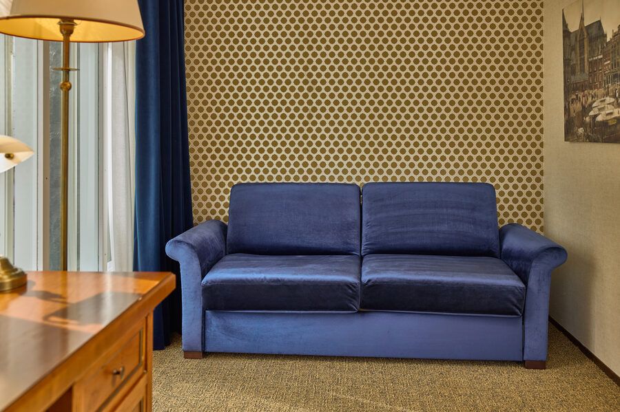 Inside, you'll find a luxurious king-size Hypnos bed, a comfortable seating area, a dedicated workspace, and a sofa bed, making the suite ideal for families with up to two children (12 years or younger). The large bathroom includes a bathtub with integrated shower, and the room is equipped with a fridge, Nespresso coffee machine, soft bathrobes, slippers, and a selection of high-end toiletries to make your stay feel effortlessly complete.